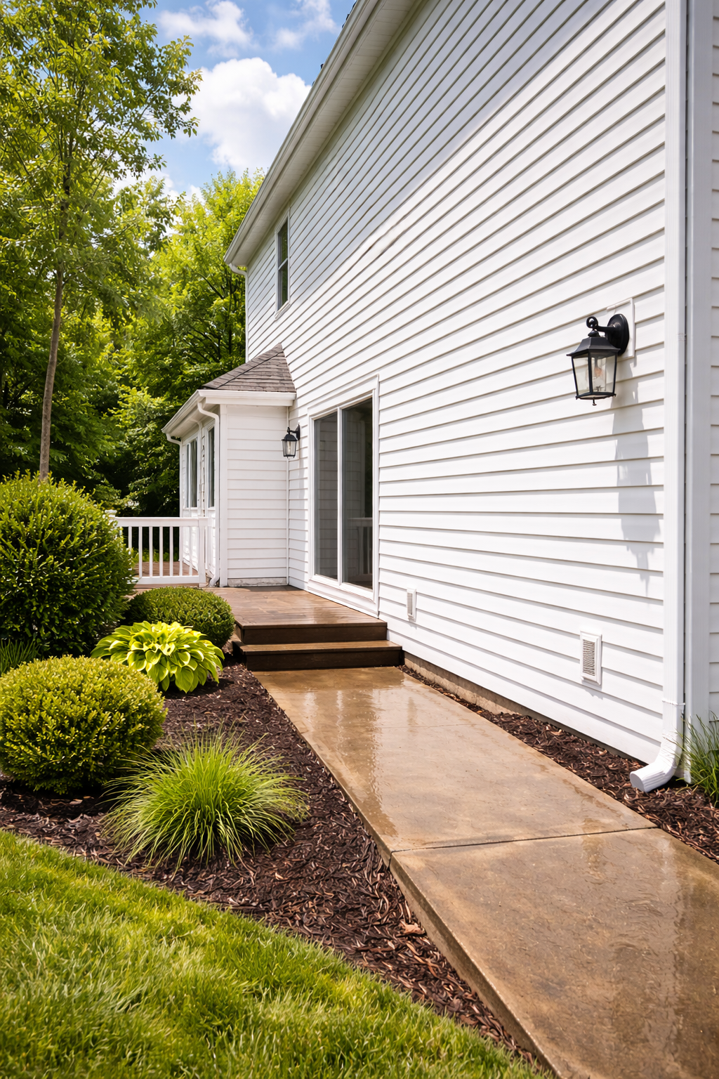 We wash exterior walls, porches, patios, and entry areas to remove dirt, pollen, mildew, and environmental buildup. Our process is designed to safely clean siding and finished surfaces without causing damage, helping your home look brighter and well-maintained.