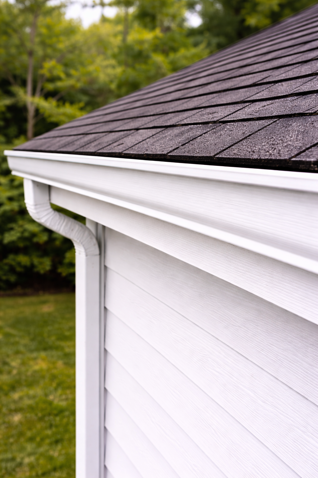 We remove debris and buildup from gutters to improve appearance and functionality. Exterior gutter faces are brightened to eliminate staining, and cobwebs are removed from rooflines, corners, and fascia areas.